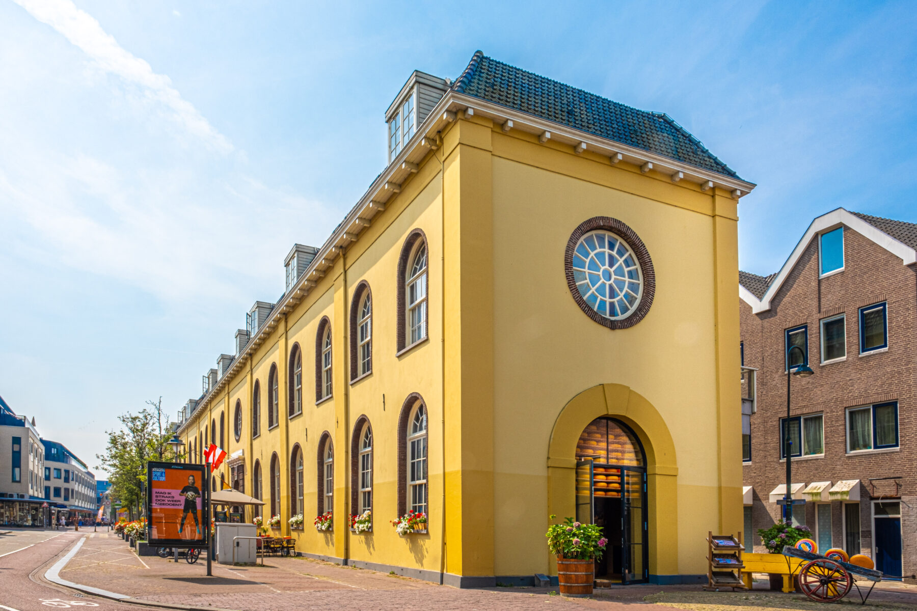 Daar staan de koeien in de wei, die dagelijks melk geven, waarvan deze beroemde kaas wordt gemaakt. Vanuit de polder brengen de boeren de kazen naar het centrum aan de voet van het authentieke stadhuis, waar ze op de kaasmarkt verhandeld worden.