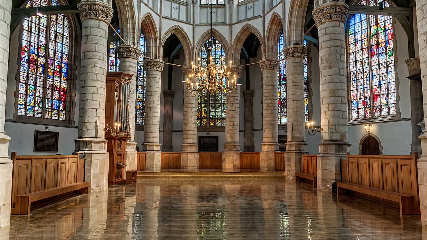 Wanneer het zonlicht door de 72 wereldberoemde gebrandschilderde ramen naar binnen valt, is het voor uw gasten direct duidelijk hoe bijzonder deze plek is. Of het een vergadering van vier in de Kerkmeesterskamer betreft of een plenaire bijeenkomst met 1800 mensen in het Schip van de langste kerk van Nederland: de Sint-Jan maakt een onvergetelijke indruk op uw gasten!
